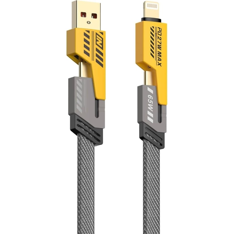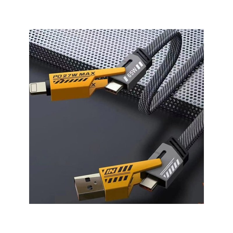 این کابل هوشمند و چندکاره، با قابلیت شارژ سریع Power Delivery تا 27 وات، بهترین گزینه برای شارژ دستگاههای آیفون و سایر گجتهای دارای پورت Lightning یا USB‑C است. با طراحی فلت و جمعوجور و طول 1.2 متری، این کابل بهراحتی در محیط کار یا منزل قرار میگیرد و فضای کمی اشغال میکند. روکش برزنتی مقاوم آن از گرهخوردن و پیچیدگی جلوگیری میکند و آن را به یک انتخاب ایدهآل برای استفاده روزمره تبدیل کرده است.
